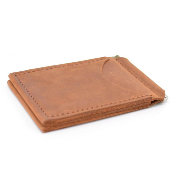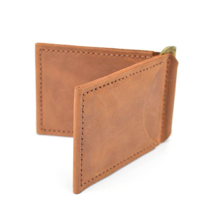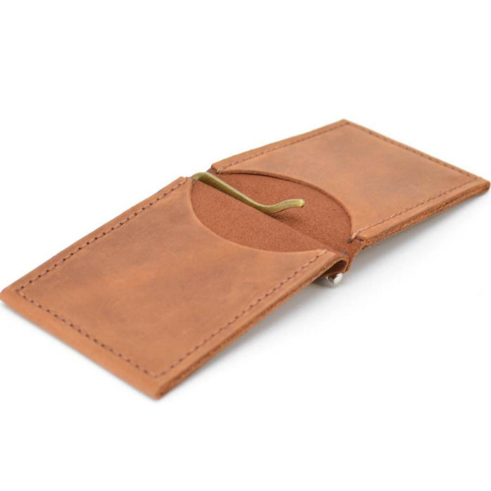Стильний затискач для купюр від українського виробника TARWA. Аксесуар виготовлений із натуральної шкіри Crazy horse, ручної роботи Виріб виконаний повністю вручну. Ця модель TARWA всередині має затискач для купюр і 4 відділення для карт. Розмір затиску дозволяє легко поміститися в кишеню. Розмір 11,5 см на 8 см.