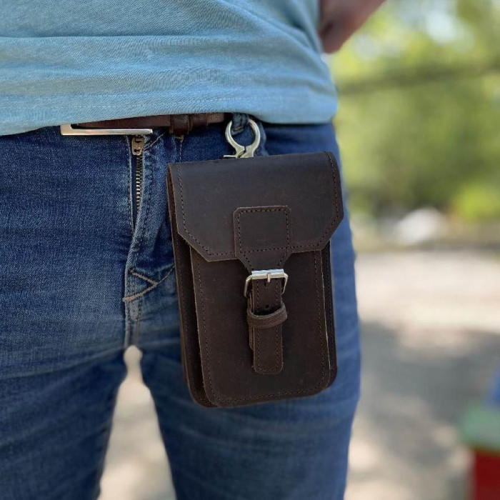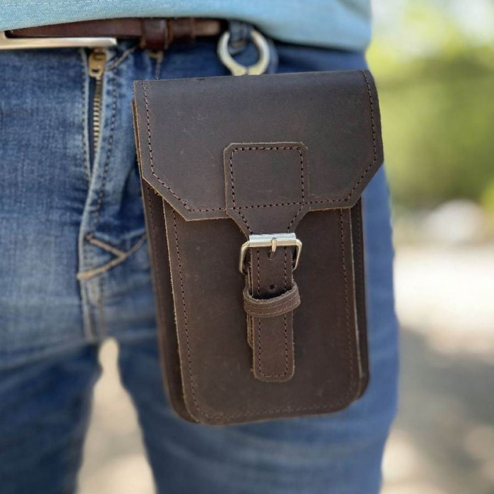 Дуже стильний та універсальний чоловічий аксесуар, підійде для щоденного використання. Його можна носити на поясі чи карабіні. Чохол виконаний у коричневому кольорі, у розмірі (16.5×2×10). У цю модель можна помістити - гроші, смартфон, ключі та документи.