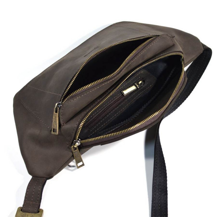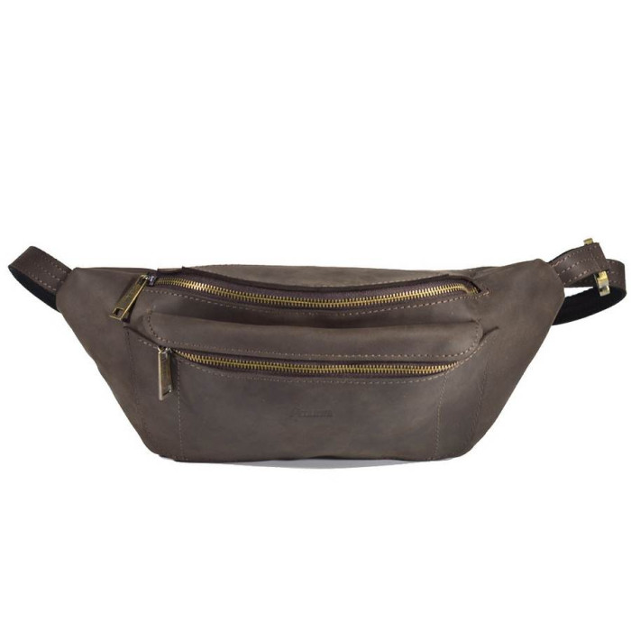 Шкіраная сумка бананка TARWA 3012 в коричневой крейзи хорс, производство Україна.