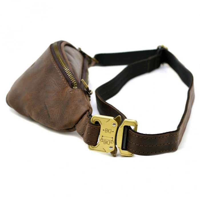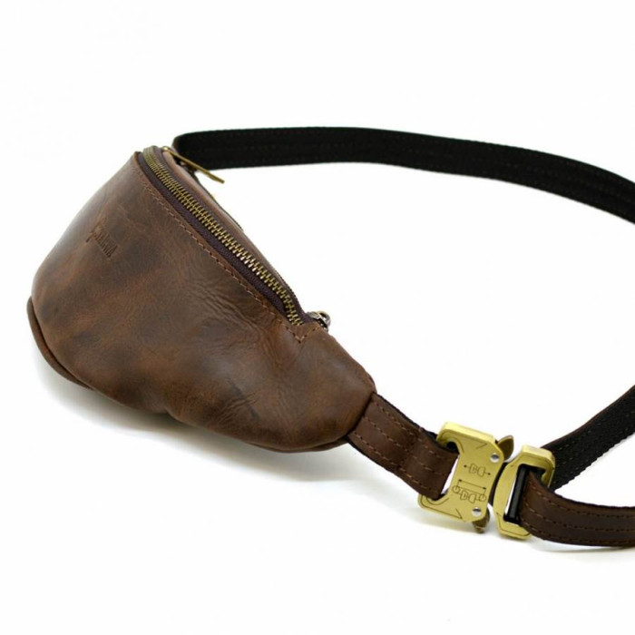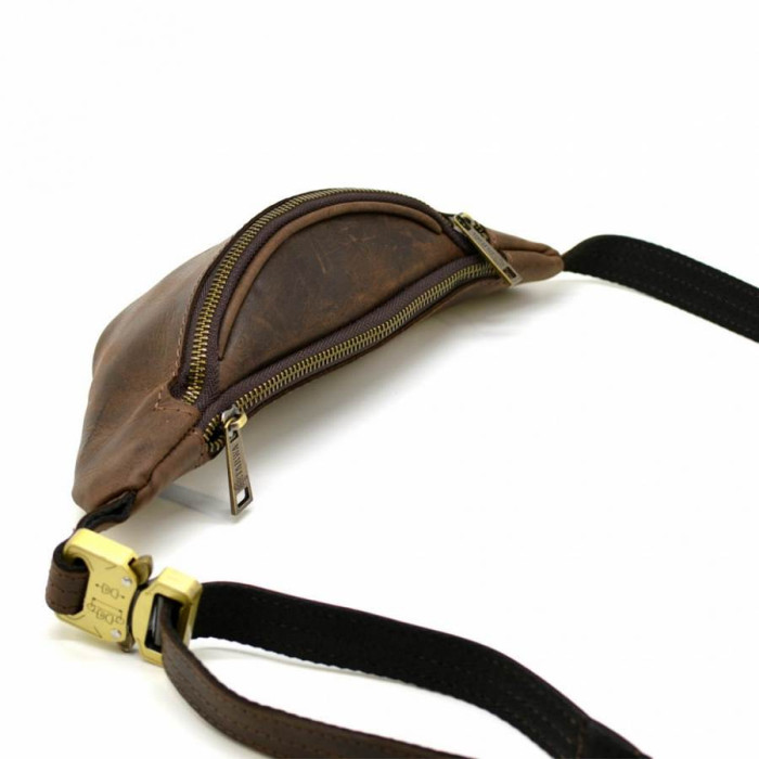 Напоясна маленька сумка з натуральної кінської коричневої шкіри RC-3034-3md від українського бренду TARWA. Атрибут стане Вашим супутником як в поїздках і подорожах, так і просто на кожен день. У цій сумочці Ви зможете розмістити багато дрібних і необхідних Вам особистих предметів: смартфон, маленьке портмоне, права, ключі. Аксесуар має два відділення, які застібаються на окрему блискавку, з внутрішнім врізною кишенею, також на блискавки. Металева фурнітура в кольорі темний нікель. Напоясний регульований ремінь складається з шкіри і текстиля, що запобігає його розтягування. Підклад виконаний з міцної тканини. У виробі використана дуже надійна металева застібка - фастекс.