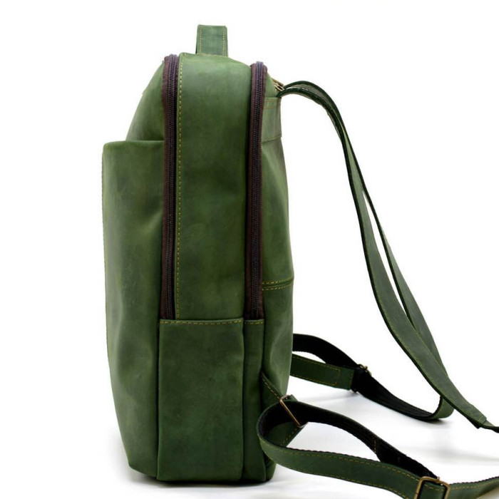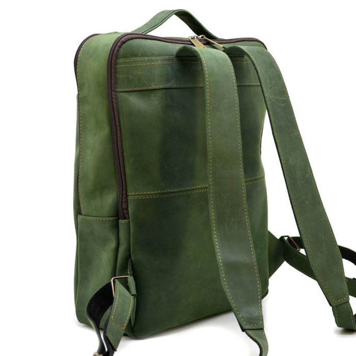зовні на лицьовій стороні є додаткове відділення-кишеня накладного типу, який застібається на магнітну кнопку. щільна шкіра, якісний підклад і надійна фурнітура порадує свого володаря довгою службою. Широкі шкіряні шлейки забезпечать комфортне носіння аксесуара на спині. виріб оснащений ручкою, розташованою зверху, для перенесення в руці.