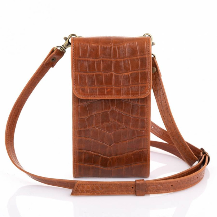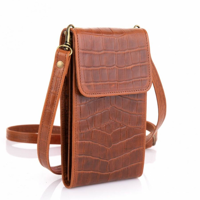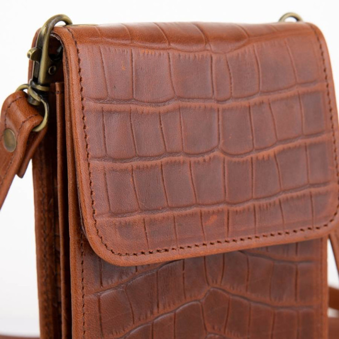Шкіряна жіноча сумка-чохол, українського виробника - TARWA. Виготовлена з натуральної телячої шкіри, з тисненням під рептилію. Аксесуар дуже стильний і практичний, має:
