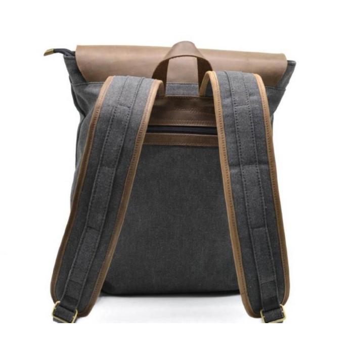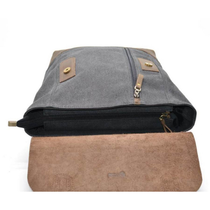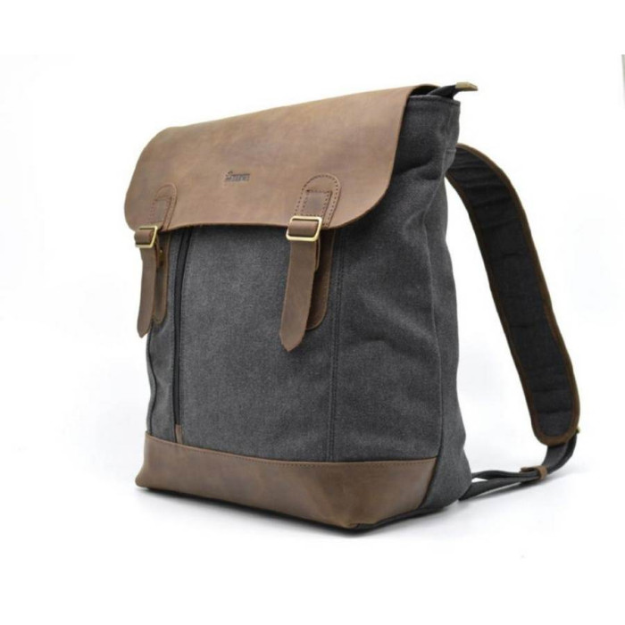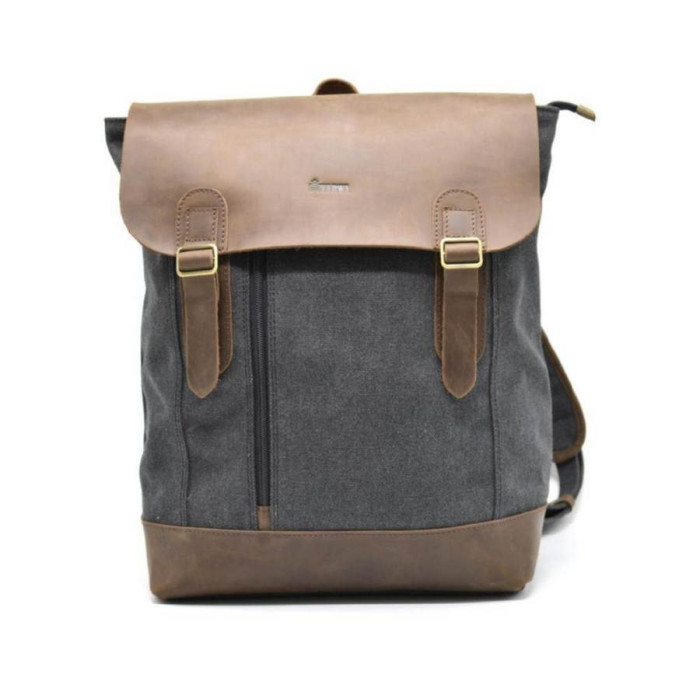 Стильний, молодіжний рюкзак, парусина + шкіра RG-3880-3md від бренду TARWA. Виріб пошито з дуже щільної тканини з шкіряними вставками, і з клапаном з кінської шкіри, тканинної підкладкою. Усередині рюкзачок складається з одного об'ємного відділення, з одного боку є кишеня-роздільник з блискавкою, і кишеню трохи менше для дрібних предметів, також з блискавкою, і з іншого боку ще дві відкритих кишені. На лицьовій стороні аксесуара вертикальна блискавка-кишеню. Рюкзак застібається на блискавку і зверху накривається клапаном, має широкі зручні шлейки.