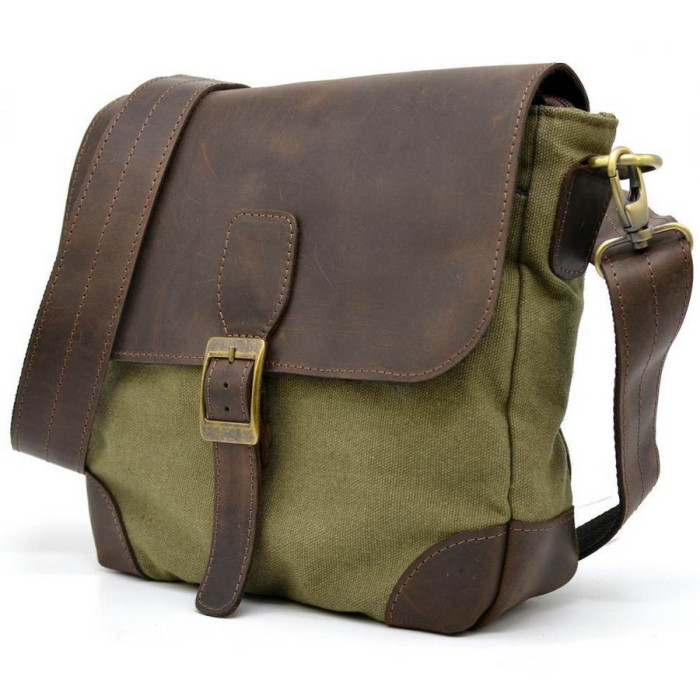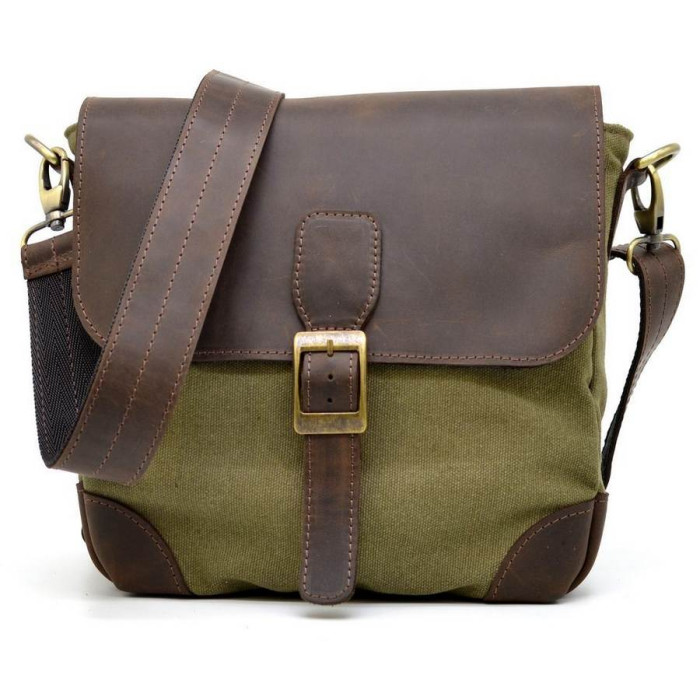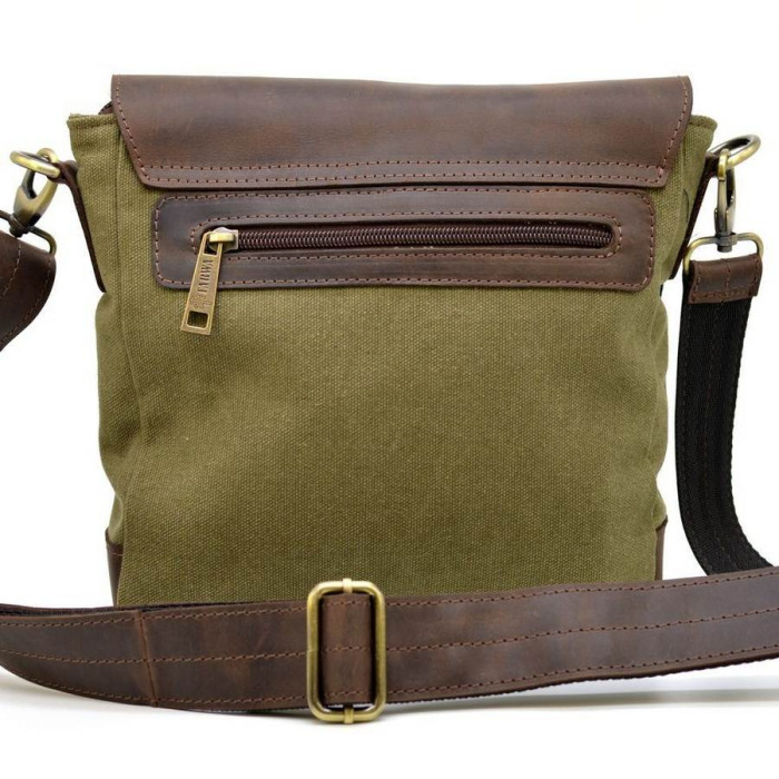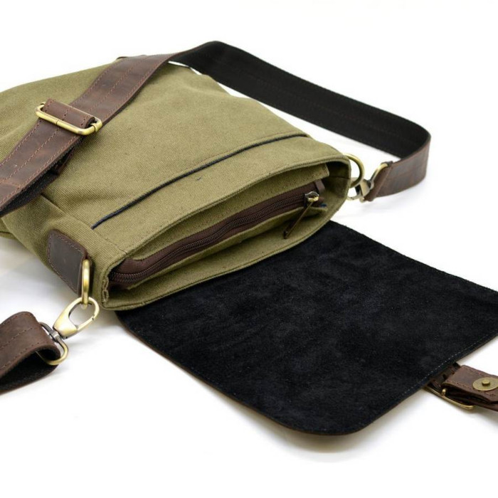 Сумка-месенджер через плече мікс тканини канвас і натуральної шкіри RH-1309-4lx від українського бренду TARWA. Ідеальне рішення на кожен день. Виріб складається з одного місткого відділення, всередині якого є два відкритих кишеньки для телефону та інших дрібних предметів, а також є врізна кишеня з блискавкою для цінних речей. Сумка застібається на блискавку і зверху накривається шкіряним клапаном з ремінцем і магнітом. Під клапаном ховається великий плоский відкритий кишеню. На задній стінці також є врізна кишеня на блискавки. У комплектацію сумки входить знімний регульований ремінь з шкіряним наплічником.
