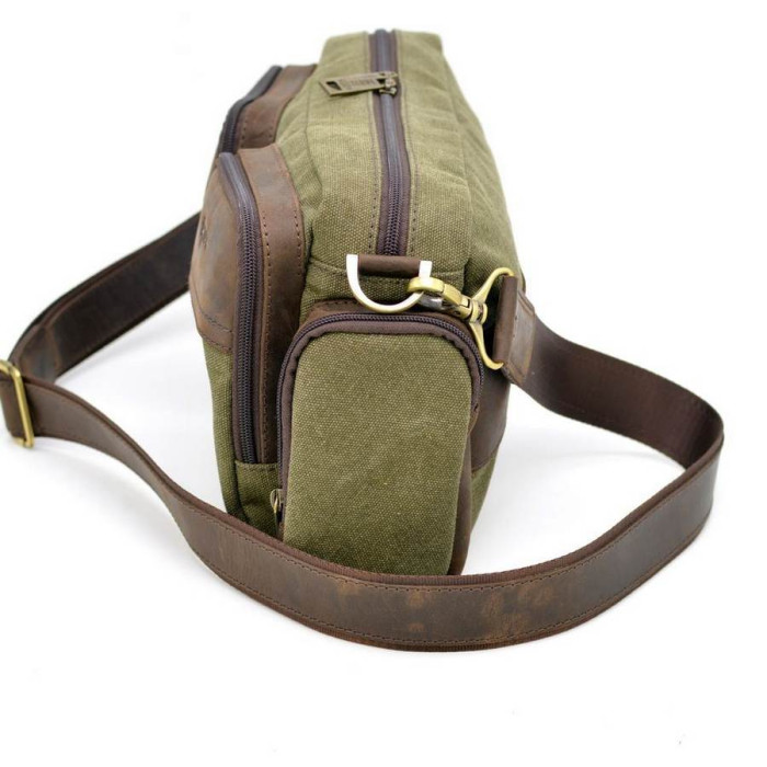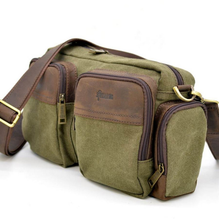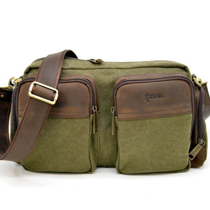 Сумка через плече, для чоловіків, мікс парусини і шкіри RH-3941-4lx бренду TARWA. Корисний і зручний аксесуар на кожен день! Виріб на одне відділення з внутрішнім врізною кишенею. Завдяки чотирьом об'ємним кишенях, розташованим на лицьовій стороні: два великих спереду, і два на торцях, Аксесуар набуває особливого стиль. Сумка наділена шкіряним знімним ремінцем з наплічником, для зручної носіння на плечі. Для виготовлення виробу виробник використовував якісні матеріали: щільна тканина канвас (парусина), теляча шкіра, текстильний підкладка всередині, брендована фурнітура. На одній з зовнішніх шкіряних вставок також присутній логотип виробника TARWA.