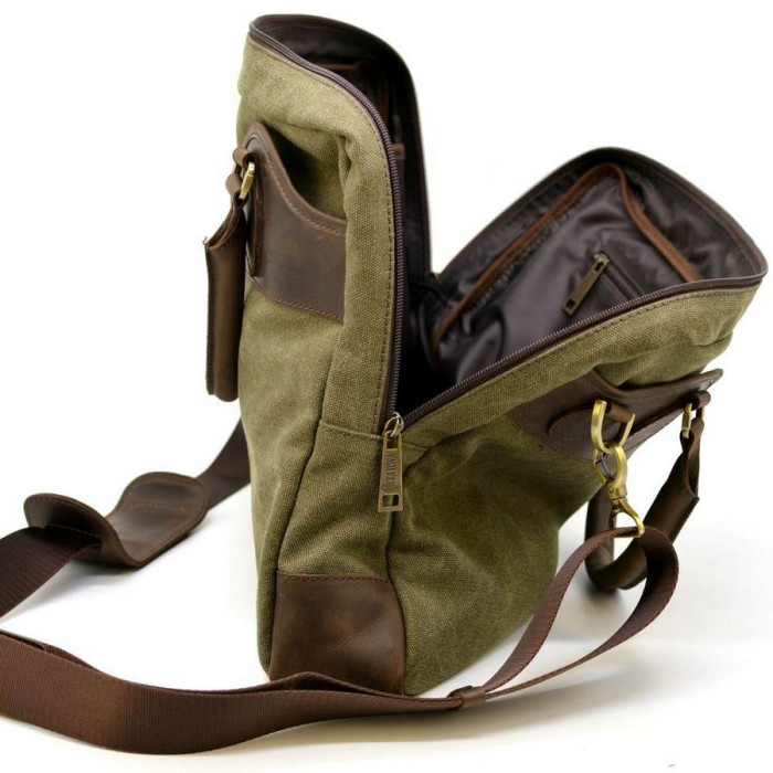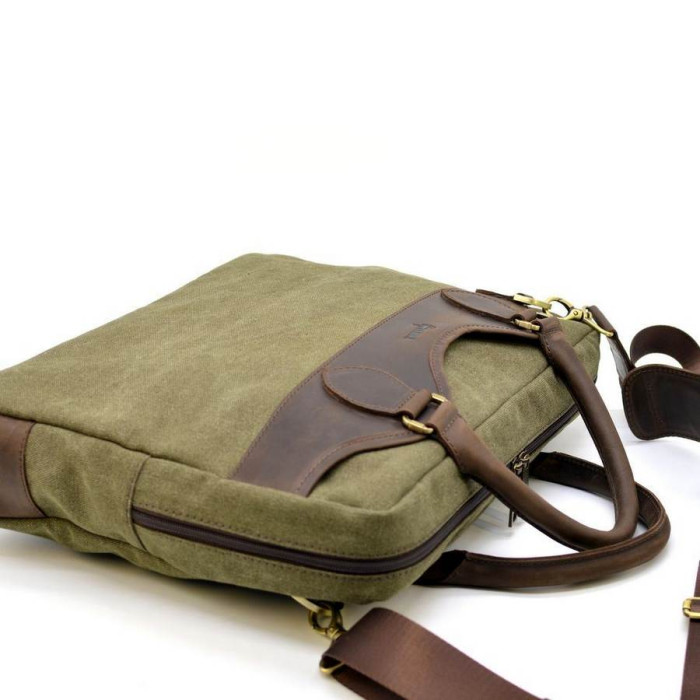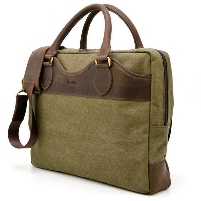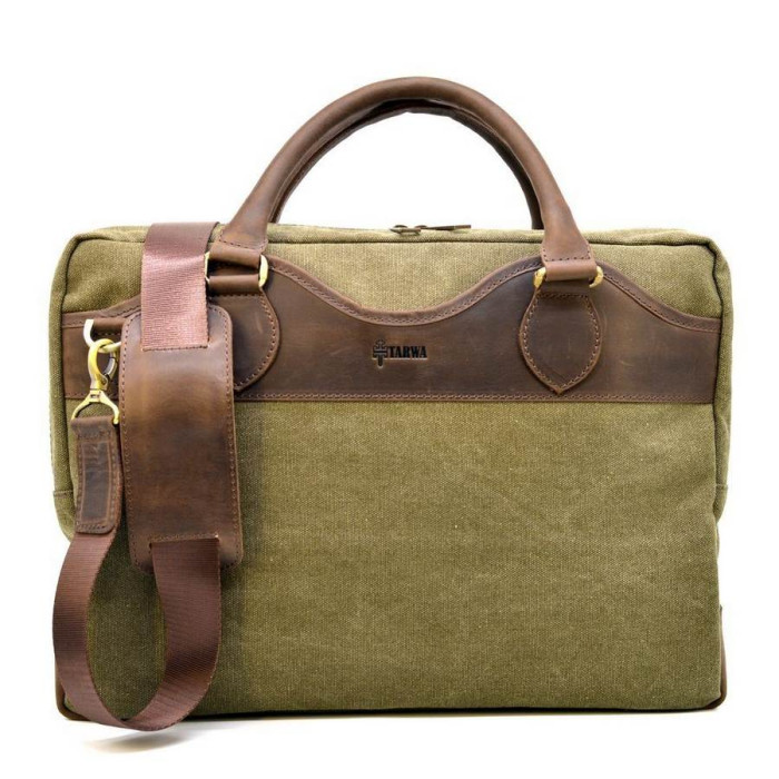 Чоловіча сумка RH-8839-4lx комбінований варіант з тканини Канвас і натуральної шкіри Crazy Horse, від українського бренду TARWA. Полегшений варіант для ноутбука до 14 "або документів А4. Виріб має одне основне відділення, всередині якого є ущільнений відсік з хлястиком на липучці для ноутбука. Також, всередині Ви знайдете велика врізна кишеня з блискавкою. Сумка застібається на блискавку з двома бігунками, що дуже зручно у використанні. По обидва зовнішнім сторонам розташувалися плоскі кишені-відсіки з магнітними кнопками (займають майже всю площу вироби). Сумка декорована шкіряними вставками і логотипом бренду. Аксесуар буде зручно носити в руці, завдяки двом шкіряним ручкам, а також в комплектацію входить знімний текстильний ремінь з шкіряним наплічником.