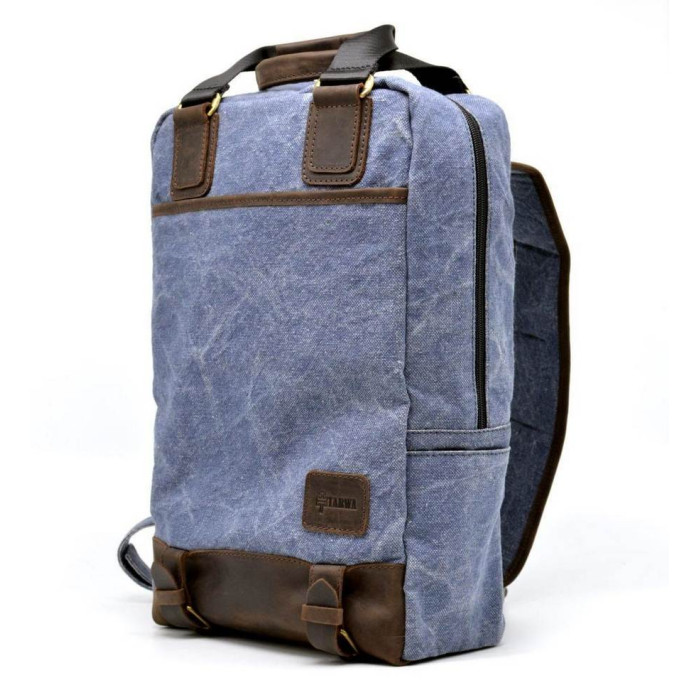 Стильний, молодіжний рюкзак на дві шлейки, з тканини схожою на джинс з шкіряними вставками RK-1210-4lx від українського бренду TARWA. Зручна модель для ноутбука, документів. Стане в нагоді для подорожей і просто на кожен день.
