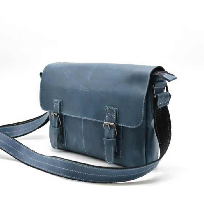 Фасонистая винтажная сумка через плечо, подходит как для мужчин, так и для женщин. Качественная натуральная лошадиная кожа крейзи хорс от бренда TARWA. Взвешенный и современный дизайн, приятный синий цвет сумки, радует глаз. Отличный вариант для ежедневных задач и деловых встреч.