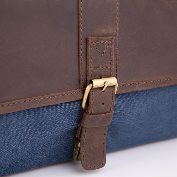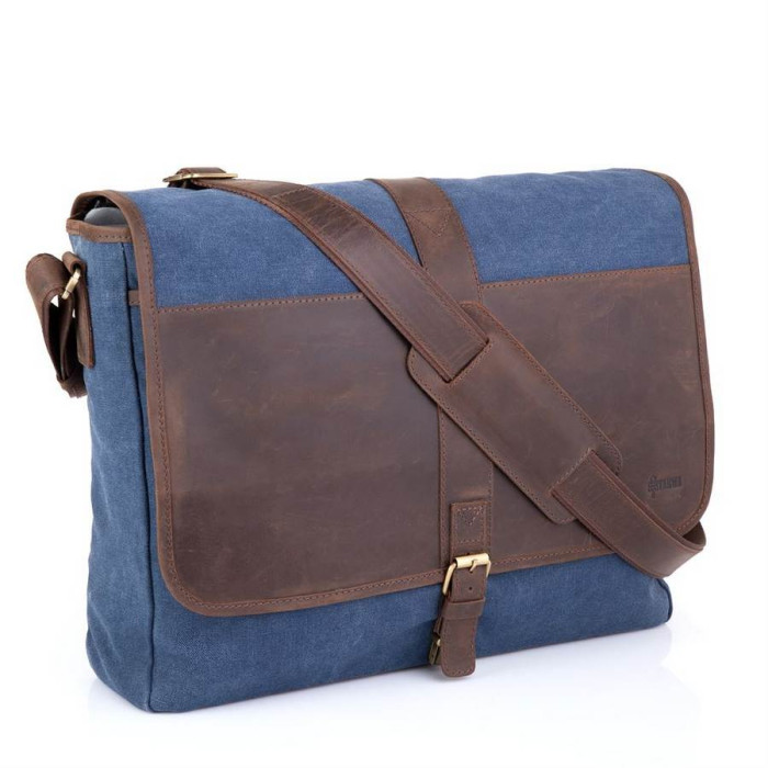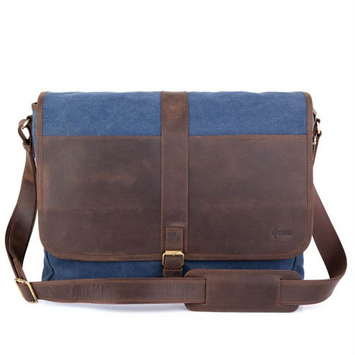Чоловіча сумка через плече, мікс канвас і шкіри RK-8880-4lx від українського бренду TARWA. Поєднання натуральної шкіри Crazy Horse і текстилю (канвас) - якісно, стильно і практично. Такі аксесуари користуються особливою популярністю. Вміщує документи формату А4 і ноутбук 15 ". Модель призначена для роботи і навчання. Виріб має одне основне відділення, усередині якого розташовується великий відсік за розміром сумки і врізна кишеня трохи менше з блискавкою. Сумка застібається на блискавку і зверху прикривається шкіряним клапаном на застібці портфельного типу. Частина клапана виконана зі шкіри і прикрашена фальш-застібкою. Під клапаном є зручний плоский кишеню. Тильна сторона аксесуара - декорована шкіряною вставкою. Сумка оснащена шкіряним регульованим ремінцем зі шкіряним наплічником.