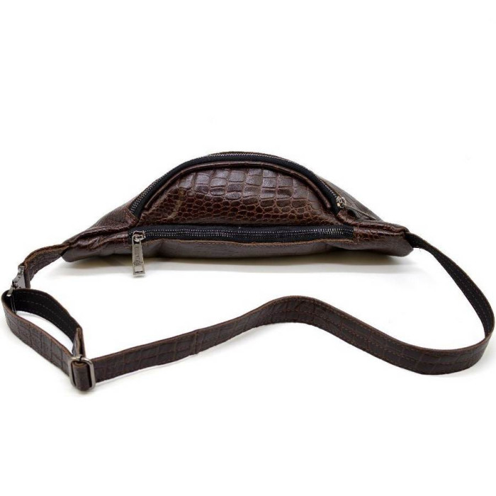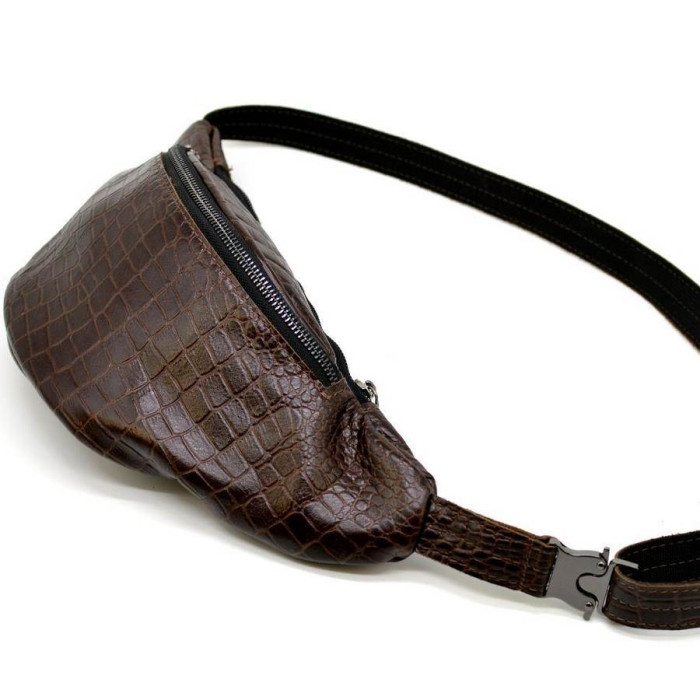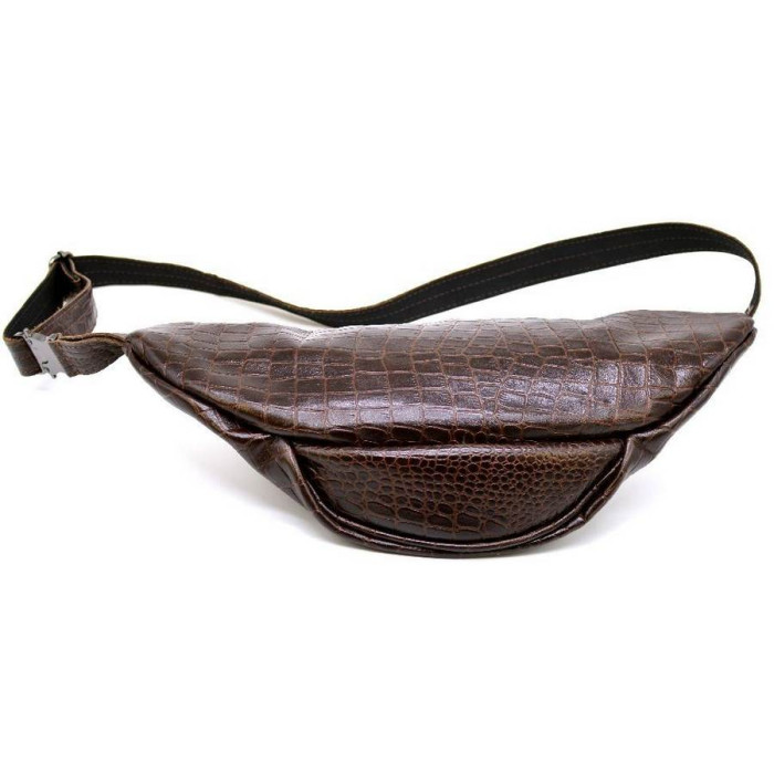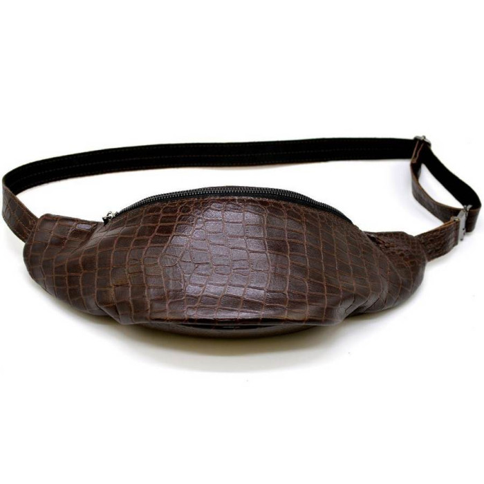 Напоясна сумка RP1-3036-3md від українського бренду TARWA виконана зі шкіри "крокодил". Практична, зручна і містка модель як для поїздок, так і на кожен день для зберігання грошей, документів, телефону та іншого. Дана модель може бути цікава як для чоловіків, так і для дівчат. Виріб складається з двох відділень і внутрішньої кишені на блискавці в одному з них, більш великому. Напоясний ремінь складається з шкіри і щільного текстилю, що досить зручно при носінні. Всередині підкладка з міцної тканини. Використана тільки якісна металева фурнітура: фастекс (застібка), блискавки, фіксатор регулювання ременя.