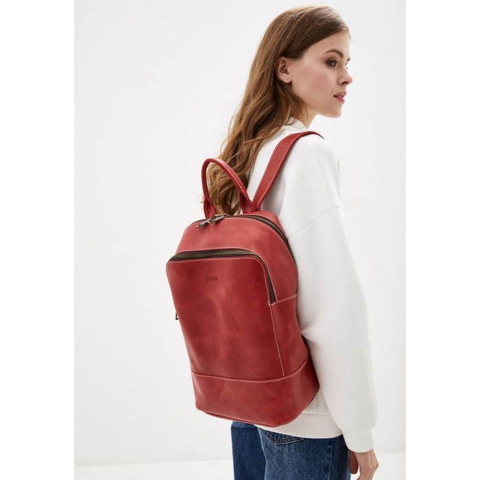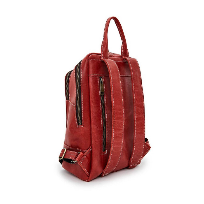 Жіночий червоний шкіряний рюкзак TARWA RR-2008-3md середнього розміру