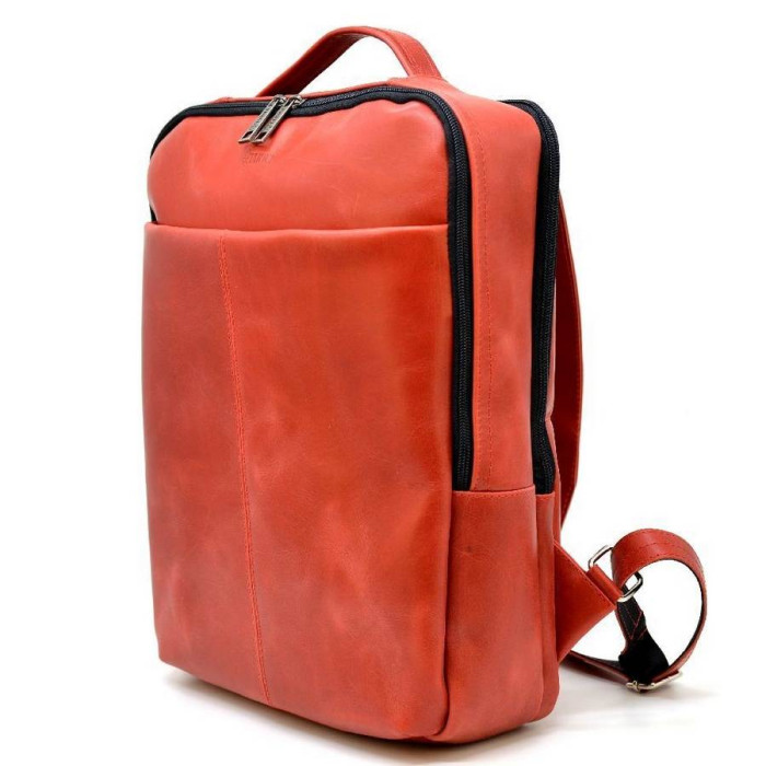 Яскравий жіночий міський рюкзак з натуральної телячої шкіри RR-7280-3md, від українського бренду TARWA. Аксесуар виконаний в дуже красивому червоному кольорі! Зручний і практичний аксесуар, прекрасне рішення для повсякденного носіння. Рюкзак складається з двох відділень, які застібаються кожне на окрему блискавку. В одному з відділень є м'який кишеню-відсік на липучці, для зберігання ноутбука до 14 "або планшета. В іншому відділенні є врізна кишеня на блискавці і дві відкритих для смартфона, портмоне, і ключів. На лицьовій стороні розташовується кишеню накладного типу, який застібається на магнітну кнопку. Щільний тканинний підкладка і надійна, брендована фурнітура доповнюють безупрезний образ даного аксесуара. Широкі шкіряні шлейки допоможуть розподілити навантаження по всій спині, що забезпечить Вам комфортне використання рюкзака.