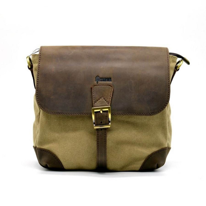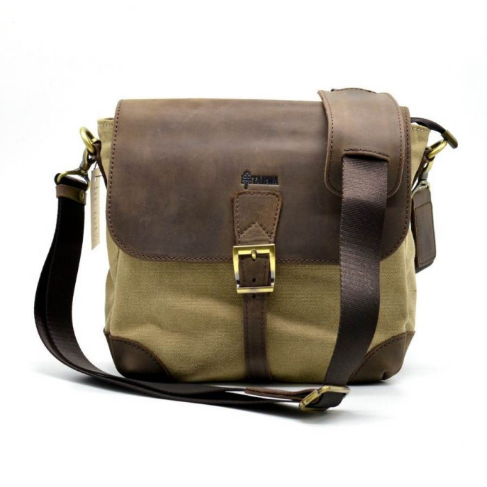 Сумка-меседжер від бренду TARWA виконана в комбінації шкіри і парусини. Незамінний аксесуар на кожен день. Одне основне відділення, в якому: один кишеню на блискавці і дві кишені для дрібних аксесуарів. Підкладка виконана з щільної тканини. Якісна, міцна