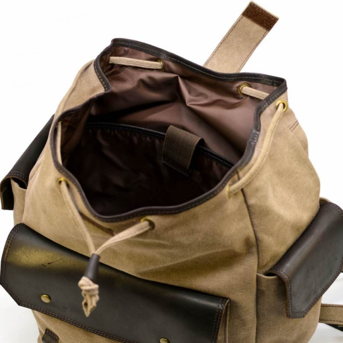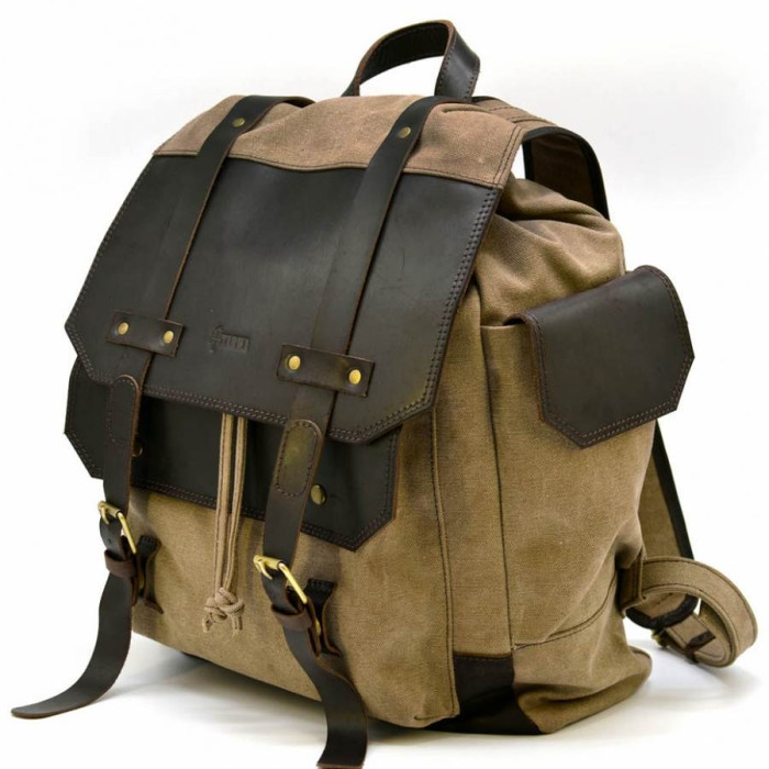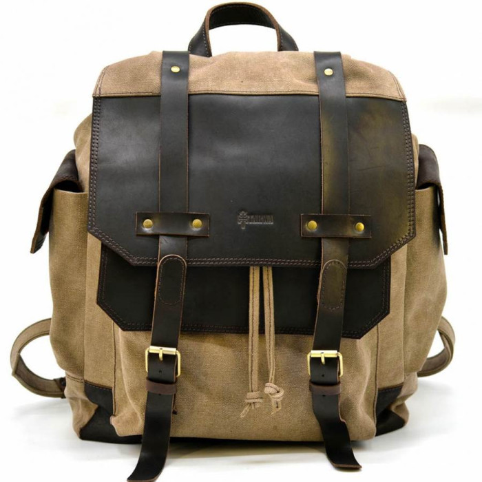 Міський рюкзак Урбан в комбінації тканина + шкіра RSc-6680-4lx TARWA. Цікавий дизайн виробу, достаток шкіряних елементів, стильна компоновка з канвас і шкіри, і продуманий функціонал закохає вас в рюкзак. Зовні: два бічних об'ємних кишені для рідин \ парасольки, влазить 1л пляшка або майботл. Закривається шкіряним клапаном на липучці передня накладна кишеня з шкіряним клапаном на магнітних кнопках комбінований клапан зі шкіри та парусини. Всередині: кишені на блискавки виразний, відкриті кишені для портмоне, телефону, павербанка, м'який відсік для ноутбука або лептопа. Широкі шлейки 7.5см зі шкіряною окантовкою. На шлею на передній поверхні пришита стропа в колір з петлями для навісних чохлів, гаджетів, телефону, портативної колонки. Шкіряна ручка-петля для перенесення. Шкіряна окантовка дна для довговічності і формені в порожньому стані. Дно ущільнене.