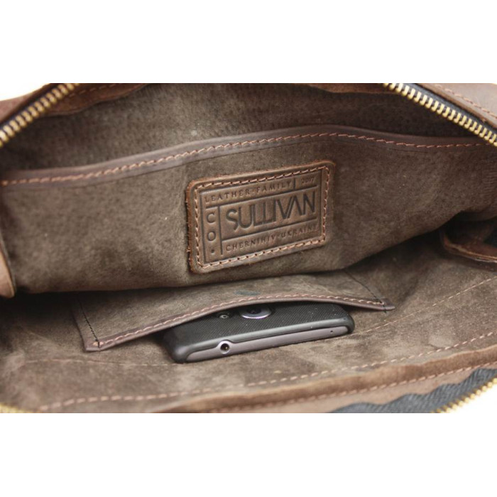 Сумка чоловіча шкіряна на плече SULLIVAN. Ручна робота. Одне відділення на блискавці з перегородкою ..