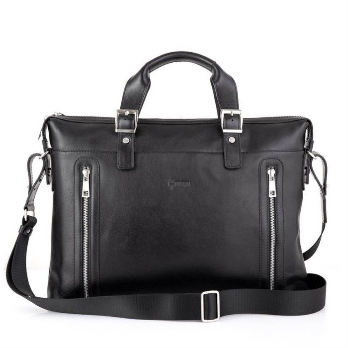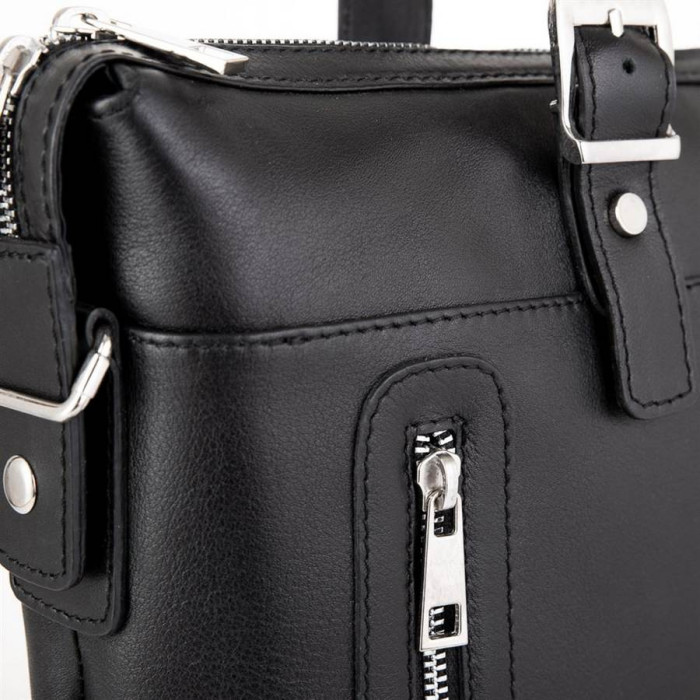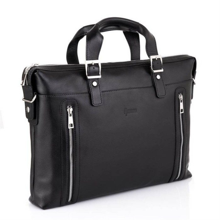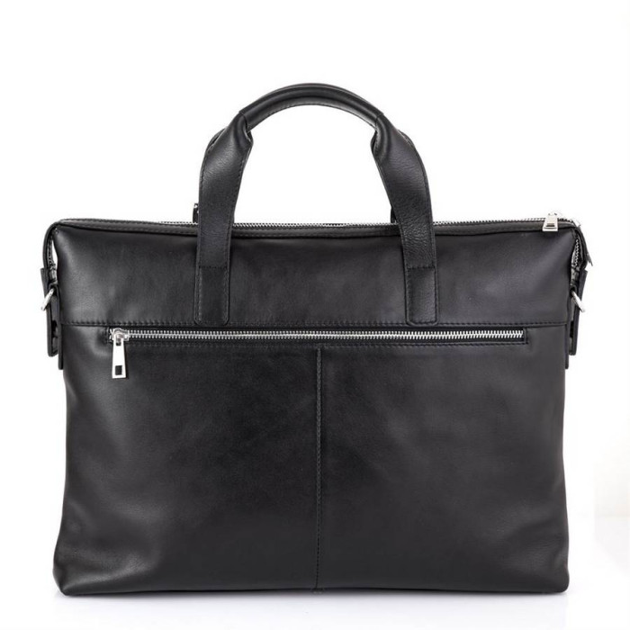 Класична сумка для ноутбука і документів TA-0043-4lx, від українського бренду TARWA. Призначена для документів формату А4 та ноутбука до 15 ". Модель тонка, але містка, виконана з натуральної шкіри" наппа "з використанням сучасних тенденцій і якісної фурнітури. Колір фурнітури - срібло. Має одне основне відділення, усередині якого розташовується кишеню-перегородка на блискавці. також передбачено врізна кишеня на блискавки і спеціальні відкриті кишені-органайзери для смартфона, портмоне і іншого. Лицьову сторону аксесуара доповнюють дві вертикальних блискавки, вони ж є кишенями. на задній стороні є велика врізна кишеня на металевій блискавці. Сама сумка також застібається на блискавку. Дві шкіряні ручки декоровані фальш-застібками. Дно сумки оснащено п'ятьма маленькими металевими ніжками. У комплект входить текстильний ремінь з шкіряними елементами через плече.