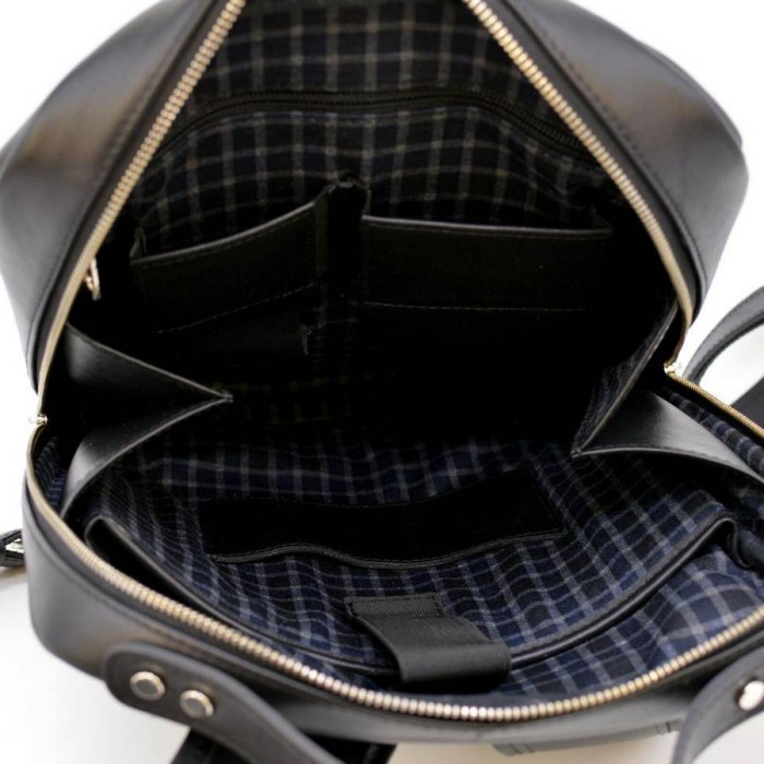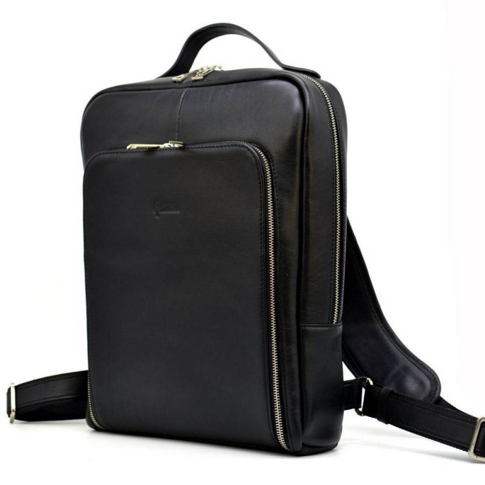 Шкіряний повсякденний рюкзак з натуральної телячої шкіри високої якості TA-1239-4lx, від українського бренду TARWA. Відмінний варіант для роботи, навчання. Універсальна модель, підійде для чоловіків і дівчат. Має одне основне відділення всередині якого є вбудована кишеня для ноутбука діагоналлю до 14 ", фіксується зверху липучкою, велика кишеня на блискавці і дві маленькі кишені для дрібниць, виконаних з натуральної шкіри. На лицьовій частині рюкзака розташована кишеня на блискавці з двома бігунками для зручності використання. з тильного боку розташувався внутрішню кишеню, закривається на блискавку. Якісна фурнітура виконана в сріблі. Зверху зручна ручка для перенесення аксесуара в руці. Широкі наплічні ремені виконані повністю зі шкіри, і завдяки своїй ширині, рівномірно розподіляють навантаження.