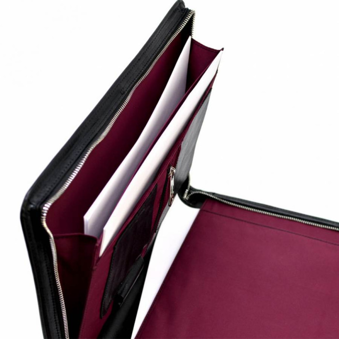 Папка вміщує в себе документи А4 в 4 спеціальних відсіку для паперів А4, в два з них документи помістяться в папці. Так само документи можна вміщати "всередину" закривається папки.