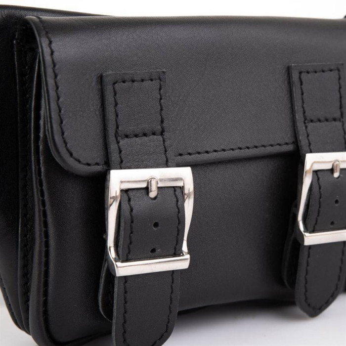Сумка складається з одного загального відділення, яке застібається на блискавку з врізною кишенею усередині. На лицьовій стороні аксесуара є два об'ємних кишені різного розміру, які застібаються за допомогою магнітних кнопок. Ремінь регульований і повністю виконаний зі шкіри.