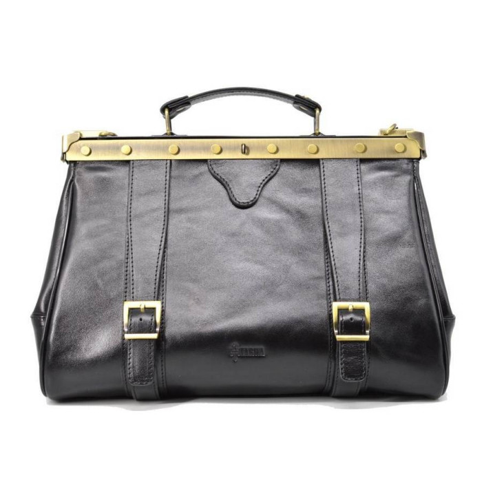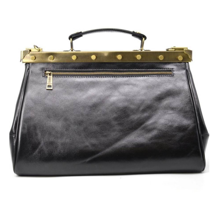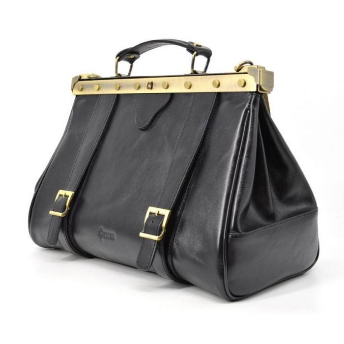 Аксесуар виготовлений з натуральної телячої шкіри високої якості. Закривається саквояж рамкової планкою з двома засувками з боків.