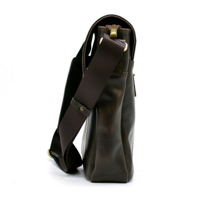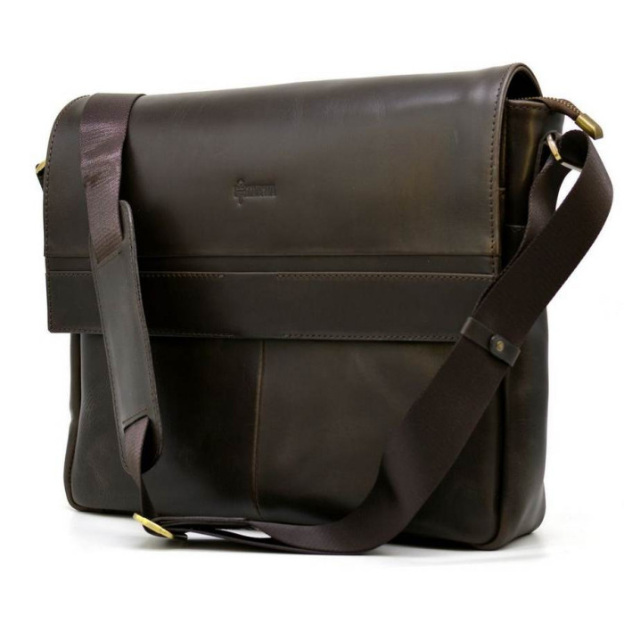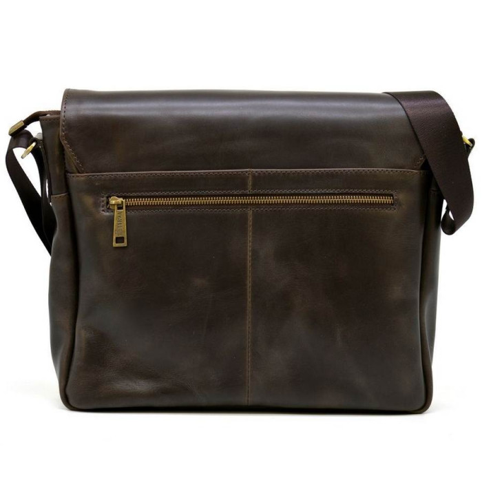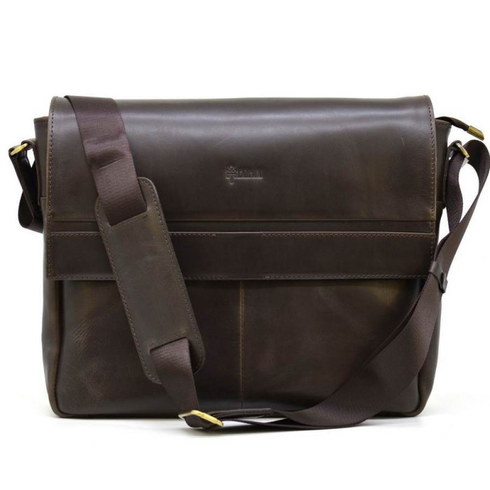 Чоловіча шкіряна сумка через плече TС-7742-4lx TARWA підійде для працівників офісу, студентів. Аксесуар застосуємо для документів формату А4, невеликого ноутбука до 13 ", планшета. Сумка виконана з щільної шкіри в коричневому кольорі. Виріб має одне відділення на блискавці, розділене навпіл ущільненим кишенею-перегородкою з блискавкою. В одному, є врізна кишеня з блискавкою; а в другому, три відкритих шкіряних кишені для дрібних предметів. Передня частина сумки прикрита оригінальним накладним відкидним клапаном на прихованих магнітних кнопках. під клапаном також ховається плоский кишеню. Біля основного відділення розташовується прихований кишеню на всю площину сумки. Задня сторона сумки має горизонтальну врізну кишені на блискавки. Оснащена зручним і міцним плечевим ременем зі шкіри, для носіння сумки через плече. Фурнітура вироби - якісна, фірмова, з логотипом бренду. Текстильний підкладка з бавовни. Сумка має строгий класичний дизайн.