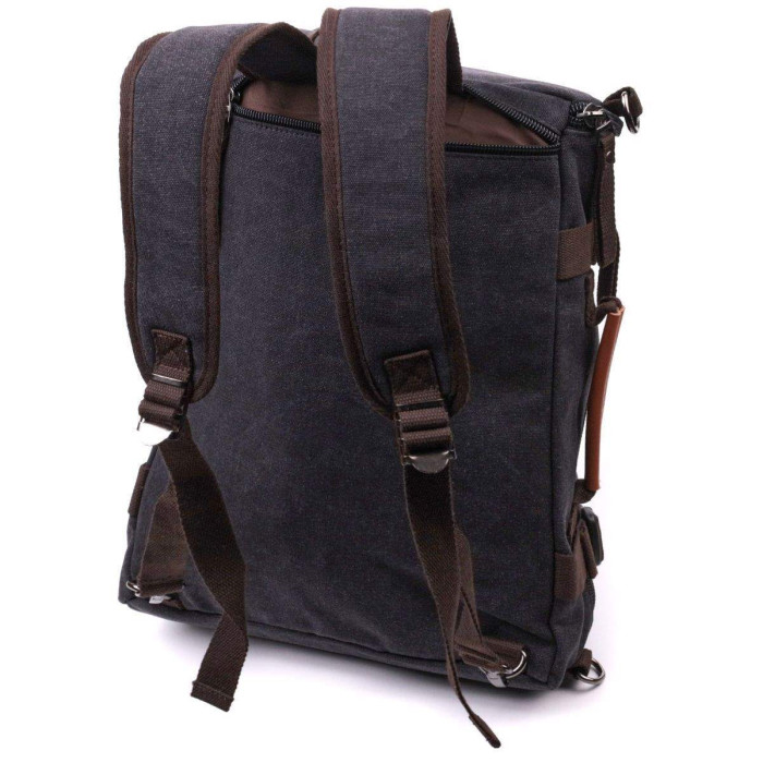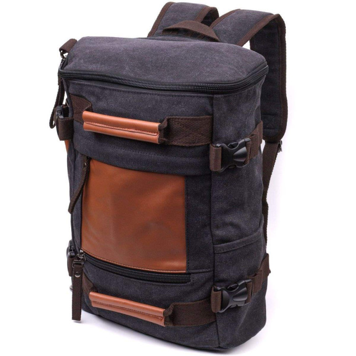 Багатофункціональний рюкзак трансформер чорного кольору із щільного текстилю. Рюкзак дуже місткий. На лицьовій стороні рюкзак має кілька ручок для носіння в руках. Виріб має дуже практичний функціонал. Рюкзак підійде для подорожей та відряджень. Усередині рюкзака є ущільнена кишеня для ноутбука. Незважаючи на свій великий розмір, рюкзак не важкий. Закривається рюкзак на блискавку. Усередині – якісна підкладка.