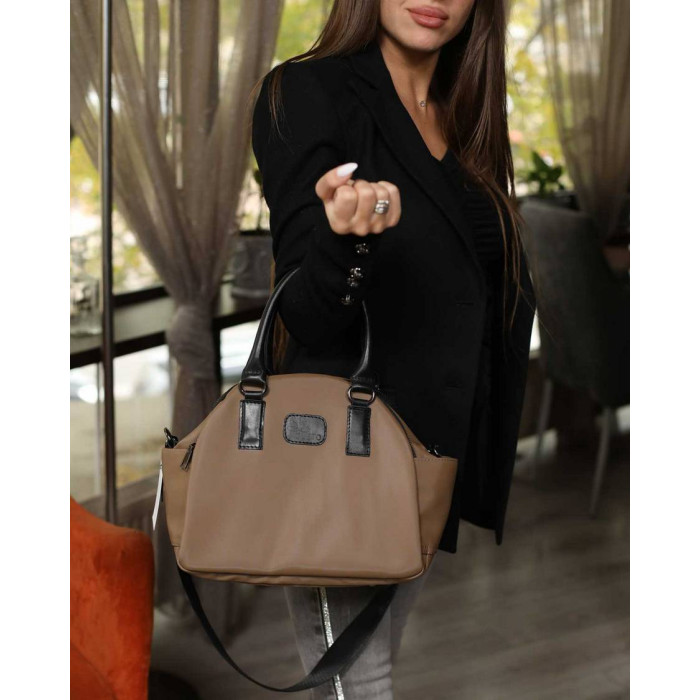 Стильна жіноча сумка Elis компанії Oleto виготовлена із спеціальної водовідштовхувальної плащівки. Ручки і вставки виконані з високоякісної лицьової шкіри. Поєднання натуральної шкіри і тканини робить сумку практичною і еластичною при будь-якій температурі.