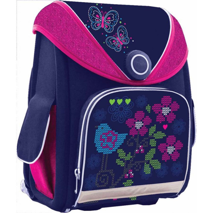 Додаткові особливості: тверда ортопедична спинка, автоматичний магнітний замок був спеціально розроблений для даної моделі ранця і розрахований на 15000 циклів відкривання-закривання, одне основне відділення, додаткові роздільники для зошитів, фронтальна кишеня для пеналу з органайзером, дві бокові кишені, світловідбиваючі елементи. Матеріал з антиалергенною обробкою.