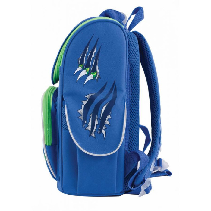 Каркасний шкільний рюкзак з пластиковими елементами, що забезпечують жорсткість спини та боковин. В основному відділенні - рухомі роздільники з еластичною стрічкою і прозора кишеня для розкладу занять. На передній панелі ранця об'ємна кишеня. Також є бокові кишені для пляшечки з водою або інших дрібниць. Широкі (6 см) та зручні лямки, що регулюються S-подібної форми. Дно ранця укріплене додатково пластиковою вставкою. Ранець можна прати у пральній машині.
