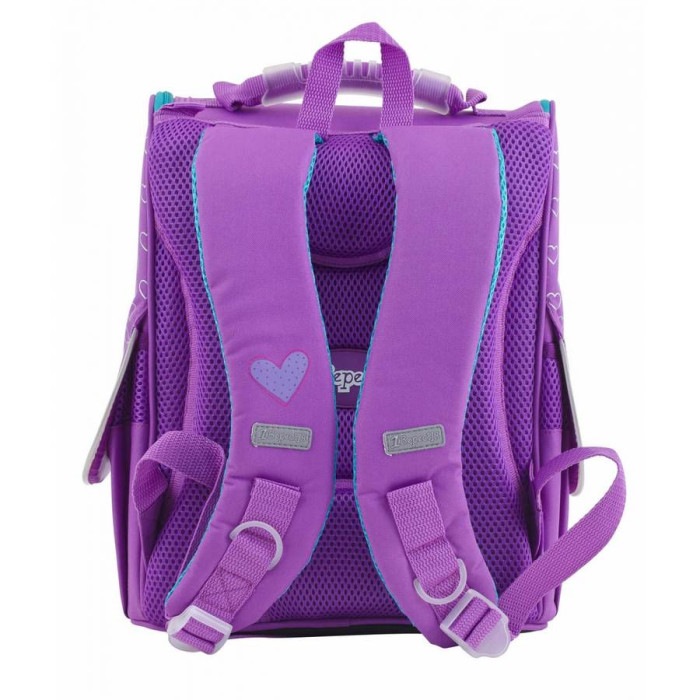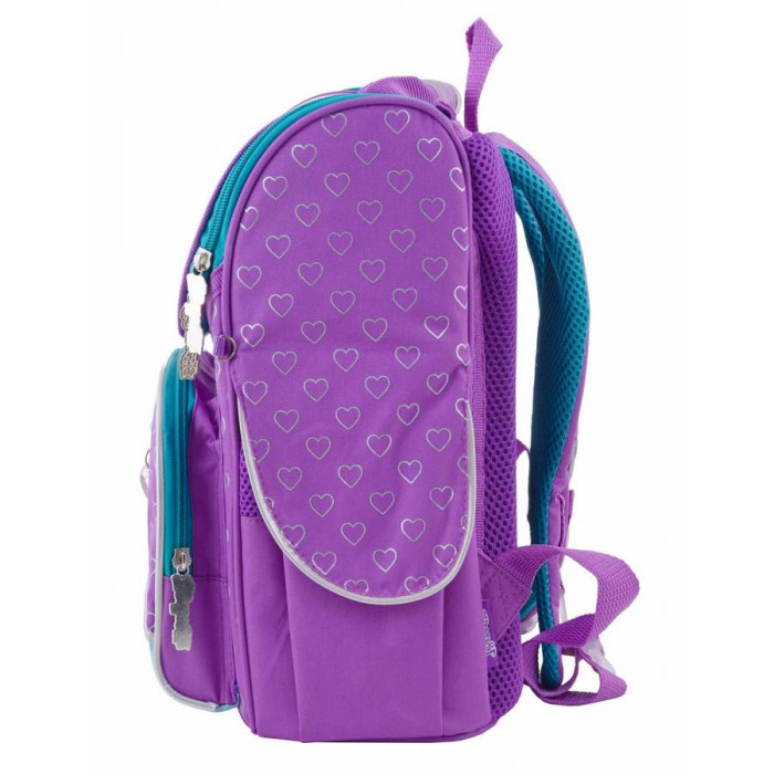 Каркасний шкільний рюкзак з пластиковими елементами, що забезпечують жорсткість зі спини та з боковин. В основному відділенні наявні рухомі роздільники з еластичною стрічкою і прозора кишеня для розкладу занять. На передній панелі ранця об'ємна кишеня. Також є бокові кишені для пляшечки з водою або інших дрібниць. Широкі (5см) та зручні лямки, що регулюються S-подібної форми. Дно ранця укріплене додатково пластиковою вставкою. Ранець можна прати у пральній машині.