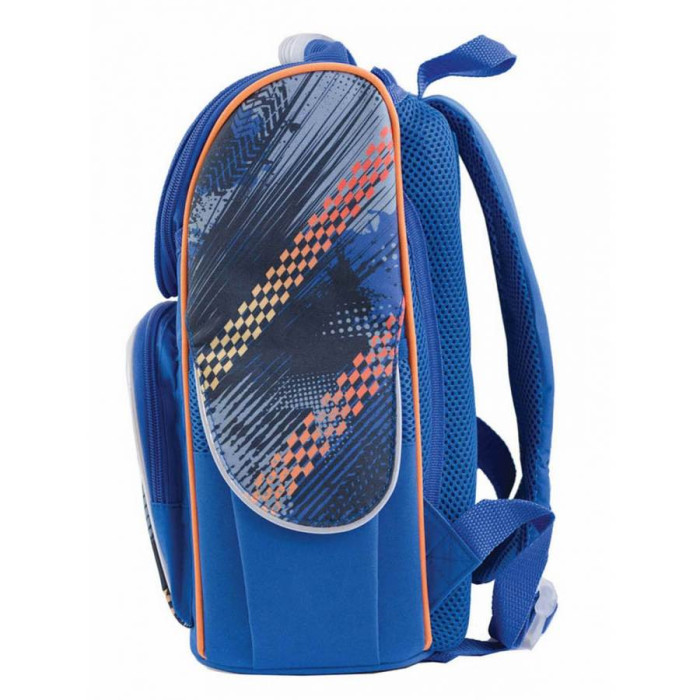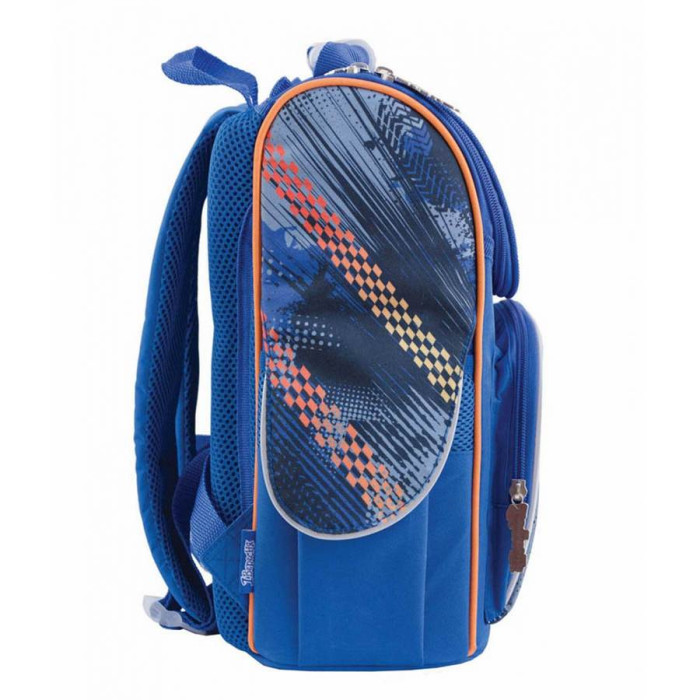 Каркасний шкільний рюкзак з пластиковими елементами, що забезпечують жорсткість спини та боковин. В основному відділенні - рухомі роздільники з еластичною стрічкою і прозора кишеня для розкладу занять. На передній панелі ранця об'ємна кишеня. Також є бокові кишені для пляшечки з водою або інших дрібниць. Широкі (6 см) та зручні лямки, що регулюються S-подібної форми. Дно ранця укріплене додатково пластиковою вставкою. Ранець можна прати у пральній машині.