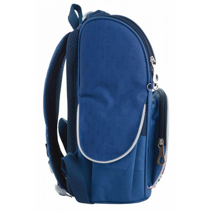 Каркасний шкільний рюкзак з пластиковими елементами, що забезпечують жорсткість спини та боковин. В основному відділенні - рухомі роздільники з еластичною стрічкою і прозора кишеня для розкладу занять. На передній панелі ранця об'ємна кишеня. Також є бокові кишені для пляшечки з водою або інших дрібниць. Широкі (6 см) та зручні лямки, що регулюються S-подібної форми. Дно ранця укріплене додатково пластиковою вставкою. Ранець можна прати у пральній машині.