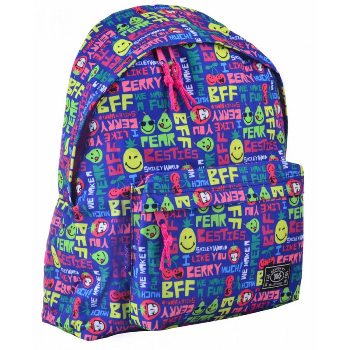 Габарити: 32х42х12 см Об'єм: 16 літрів Вага: 400г. Основний матеріал: поліестер. Особливості: Яскравий і стильний молодіжний рюкзак на одне відділення. Всередині — кишеня на блискавці і кишеня для мобільного телефону. Об'ємна кишеня на передній панелі.. Додатково: відділення для телефону