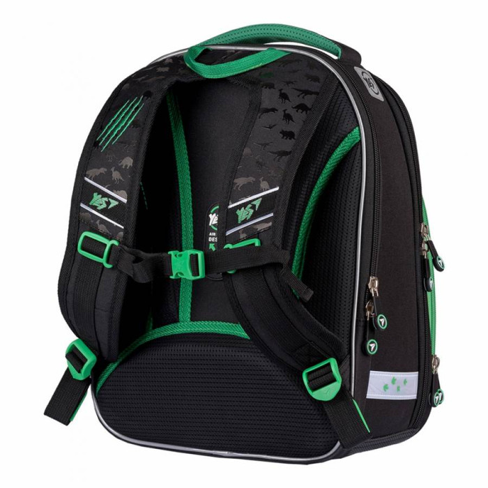 Характеристики: - Ортопедична спинка рюкзака посилена пом'якшуючими накладками, відповідає стандартам і зберігає поставу дитини; - Рельєфні накладки з Air Mesh покриттям, забезпечують повітрообмін, і запобігають запотівання спини; - Масажні анатомічні лямки "Майка" - широкі лямки анатомічної, S-образної, форми. Лямки регулюються по довжині, не тиснуть на плечі; - Система "Quick setup" - дозволяє, за допомогою кілець на кінці ременя, легко регулювати довжину лямок не знімаючи рюкзак зі спини; - Поперечний ремінь фіксує положення рюкзака і забезпечує рівномірний розподіл навантаження на спину дитини; - Передбачено коригування положення поперечного ременя, в залежності від росту дитини; - Дно рюкзака ущільнене, захищене від вологи та бруду; - М'яка ущільнена ручка з антібактеріальним напиленням; - Світловідбиваючі елементи для безпеки дитини на дорозі в темну пору доби або в сутінках.