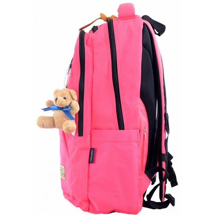 Габарити: 31х47х13 см Об'єм: 18 літрів Вага: 700г. Основний матеріал: поліестер. Особливості: У рюкзаку два основних відділення. Всередині — рухливі роздільники з еластичною стрічкою, кишеня на блискавці. Функціонал рюкзака дозволяє розмістити і систематизувати велику кількість речей. На передній панелі дві кишені на блискавці, на задній панелі — потайна кишеня та дві бічні. М'які регульовані лямки. Брендована підкладка і металева фурнітура. Зйомний поперечний ремінь. Фірмовий брелок — ведмедик.. Додатково: водовідштовхувальний, наявність відділення для органайзера, телефону