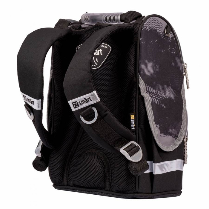 - Ортопедичне форма спинки з м'якими накладками знижує навантаження на спину і зберігає поставу дитини;