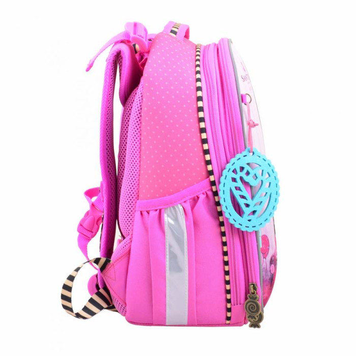 Рюкзак призначений для учнів молодшого шкільного віку. Має два основні відділення. Всередині — сітчаста кишеня, роздільник для зошитів, а також кишенька-гаманець. Вся поверхня рюкзака має жорсткі вставки, передня EVA-панель захищає його від пошкоджень. Є 1 світловідбивальний елемент, дно посилене щільною матерією.