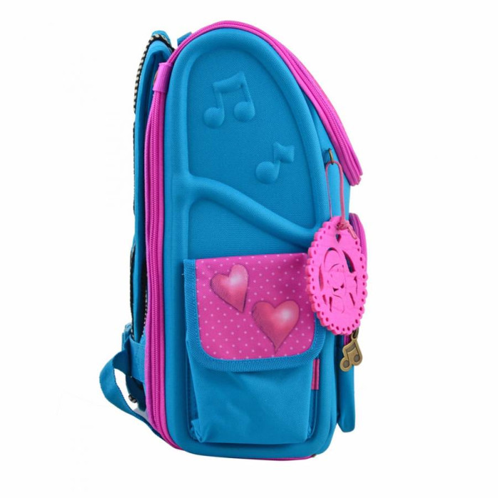 Каркасний рюкзак виготовлений з особливо міцного поліестеру з водовідштовхувальними властивостями. Рюкзак має хорошу місткість. Складається з одного основного відділення, 1 переднього, 2 бокових кишень і кишені для пляшки. Внутрішні роздільники в основному відділенні дозволяють правильно організувати простір в рюкзаку. Є кишенька для картки з розкладом і для картки з особистими даними. Завдяки силіконовій ручці можна без проблем переносити рюкзак в руках.
