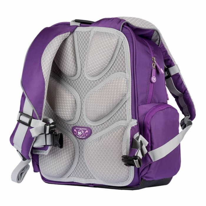 Характеристики: - Ортопедична спинка рюкзака посилена пом'якшуючими накладками, відповідає стандартам і зберігає поставу дитини; - Рельєфні накладки з Air Mesh покриттям, забезпечують повітрообмін, і запобігають запотівання спини; - Широкі, анатомічні лямки S-образної, форми, регулюються по довжині, не тиснуть на плечі; - Система "Quick setup" - дозволяє, за допомогою кілець на кінці ременя, легко регулювати довжину лямок не знімаючи рюкзак зі спини; - Поперечний ремінь фіксує положення рюкзака і забезпечує рівномірний розподіл навантаження на спину дитини; - Передбачено коригування положення поперечного ременя, в залежності від росту дитини; - Дно рюкзака ущільнене, захищене від вологи та бруду; - Ручка-петля з гумовим контуром, зручно нести в руці і розмістити на гачку - Світловідбиваючі елементи для безпеки дитини на дорозі в темну пору доби або в сутінках.