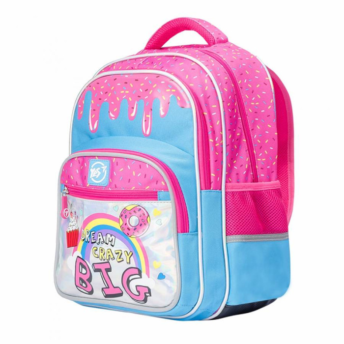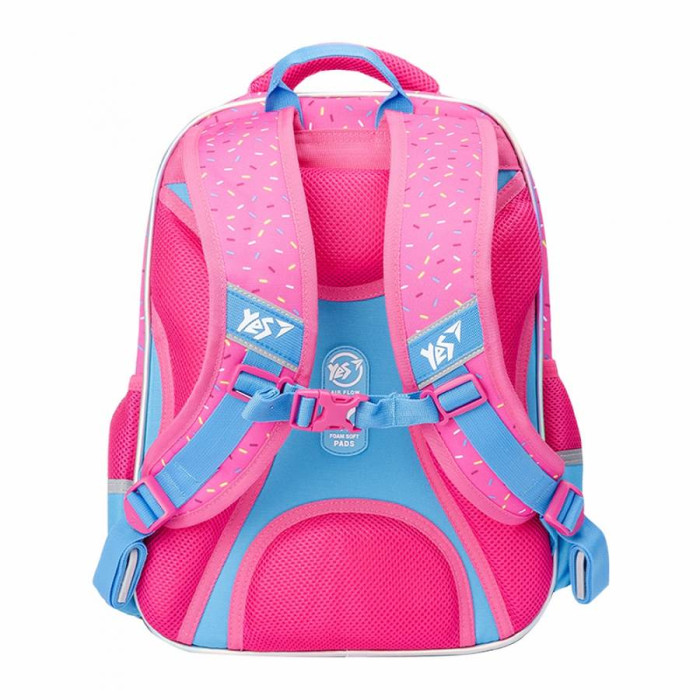 Модель рюкзака S-37, торгової марки YES, - це оптимальна модель для учнів початкових класів. Ортопедична спинка, кордовий контур, міцний матеріал - поліестер. Дно ущільнене , має захист від вологи і бруду. Рюкзак на два відділення, в основному є відділ для папки і шкільного приладдя. Чотири кишені: дві з блискавкою на фронтальній стороні і дві по боках. Поперечний ремінь фіксує положення рюкзака на спині. Яскравий, соковитий дизайн і модель рюкзака порадують дівчинку, а оптимальна якість забезпечить довгий термін служби! Розмір: 38 х 29 х 14 см.