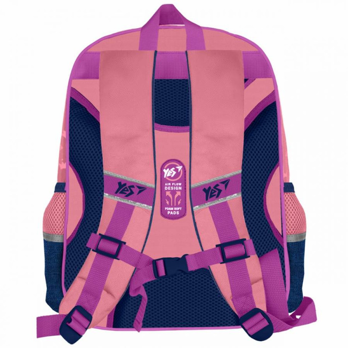 Модель рюкзака S-37, торгової марки YES, - це оптимальна модель для учнів початкових класів. Ортопедична спинка, кордовий контур, міцний матеріал - поліестер. Дно ущільнене , має захист від вологи і бруду. Рюкзак на два відділення, в основному є відділ для папки і шкільного приладдя. Чотири кишені: дві з блискавкою на фронтальній стороні і дві по боках. Поперечний ремінь фіксує положення рюкзака на спині. Яскравий, соковитий дизайн і модель рюкзака порадують дівчинку, а оптимальна якість забезпечить довгий термін служби! Розмір: 38 х 29 х 14 см.