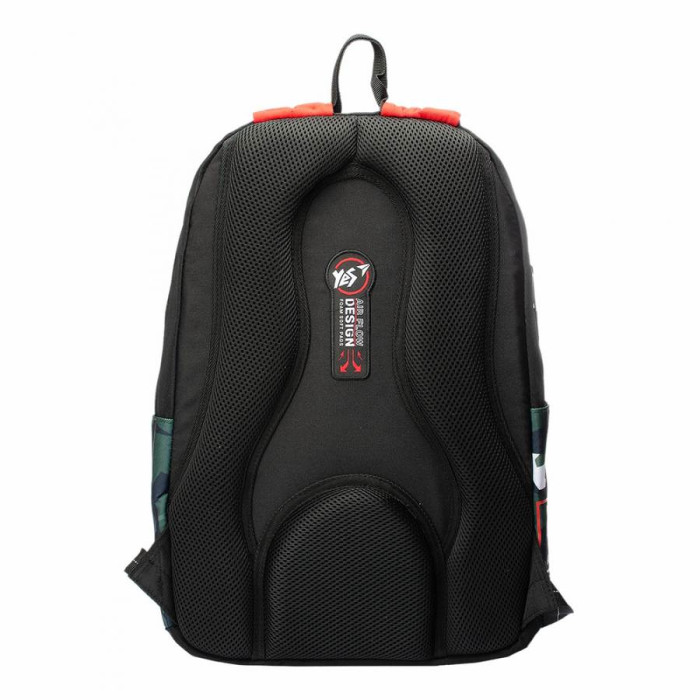 Неймовірно зручна модель Т-82, торгової марки YES, для навчання, міста і подорожей. Досить жорстка спинка, посилена пом'якшуючими накладками, і широкі лямки анатомічної форми істотно знизять навантаження на спину. Модель з одним об'ємним відділенням, всередині якого ущільнена кишеня для лептопа. Чотири кишені: дві на передній панелі і дві по боках. Обсяг бокових кишень збільшується при відкритті блискавки. Поліестер, міцна тканина з пропиткою від вологи прослужить довгі роки. Відносно невелика вага - додаткова перевага даної моделі. Розмір: 45 x 30 x 14 см.