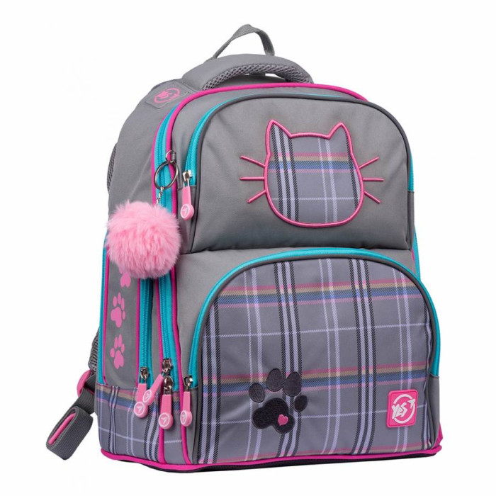 Відділення, кишені: - Одне об емне відділення для шкільного приладдя. Ергономіка всередині дозволяє організувати порядок, закріпити учнівські посібники в спеціально підготовлених відділах; - Дві фронтальні секції на блискавці - місткі відділення для пенала, ланчбоксу та іншого необхідного приладдя; - Бокові кишені на блискавці з поглибленням, щоб компактно вмістити і зафіксувати пляшку з водою або термос;