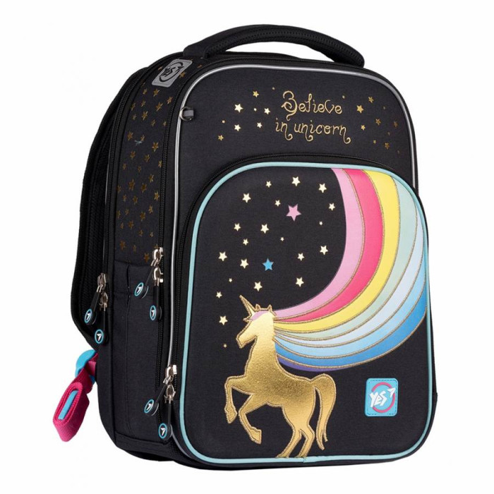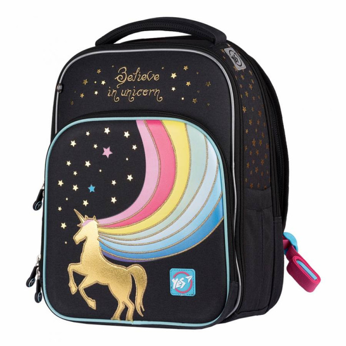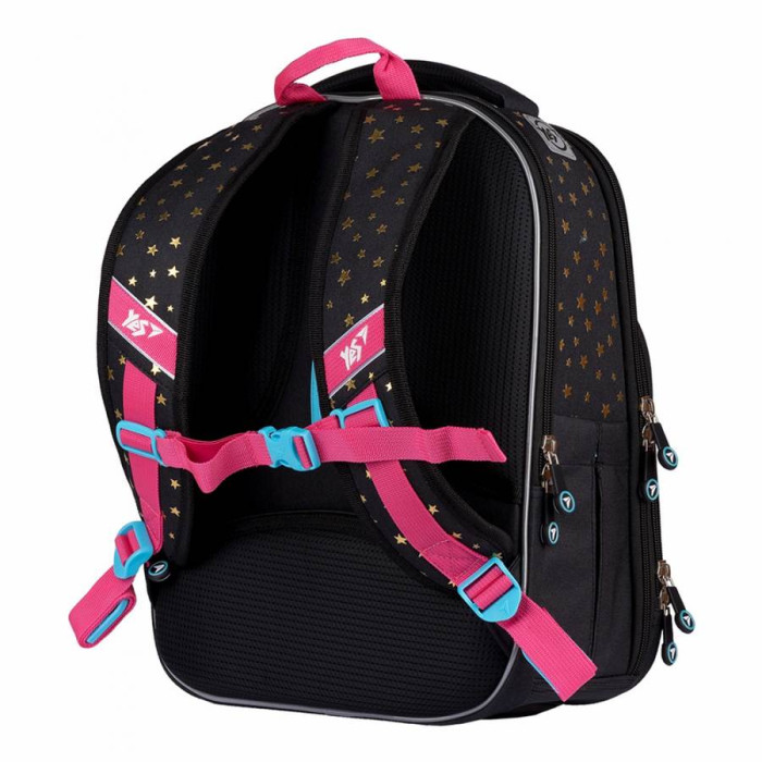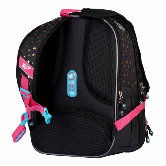 Шкільний рюкзак S-78, торгової марки YES - оптимальна модель для дітей молодшого шкільного віку. Характеристики: - Ортопедична спинка рюкзака посилена пом'якшуючими накладками, відповідає стандартам і зберігає поставу дитини; - Рельєфні накладки з Air Mesh покриттям, забезпечують повітрообмін, і запобігають запотівання спини; - Широкі, анатомічні лямки S-образної, форми, регулюються по довжині, не тиснуть на плечі; - Система "Quick setup" - дозволяє, за допомогою кілець на кінці ременя, легко регулювати довжину лямок не знімаючи рюкзак зі спини; - Поперечний ремінь фіксує положення рюкзака і забезпечує рівномірний розподіл навантаження на спину дитини; - Передбачено коригування положення поперечного ременя, в залежності від росту дитини; - Дно рюкзака ущільнене, захищене від вологи та бруду; - М'яка ущільнена ручка, ручка - петля для розміщення рюкзака на гачку; - Світловідбиваючі елементи для безпеки дитини на дорозі в темну пору доби або в сутінках.