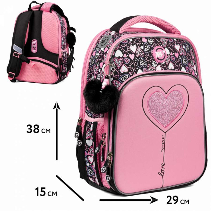 Yes My Heart S-78 виконаний в улюблених рожевих кольорах з патерном із сердечок – найкращий вибір для дівчинки-школярки молодшої школи.