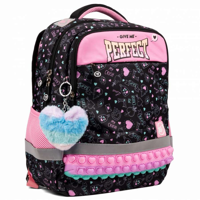 Yes Perfect S-52 Ergo не залишить байдужою жодну маленьку модницю. Кожен елемент дизайну привертає увагу та створює виразний образ. А особлива декоративна вставка з ефектом pop-it надає рюкзаку неповторності та чарівності, викликаючи зацікавлення навіть у найвибагливіших дівчаток.