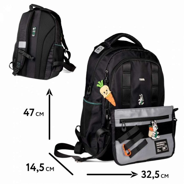 - 2 просторі передні кишені для шкільного приладдя, пеналу та інших речей невеликого розміру;