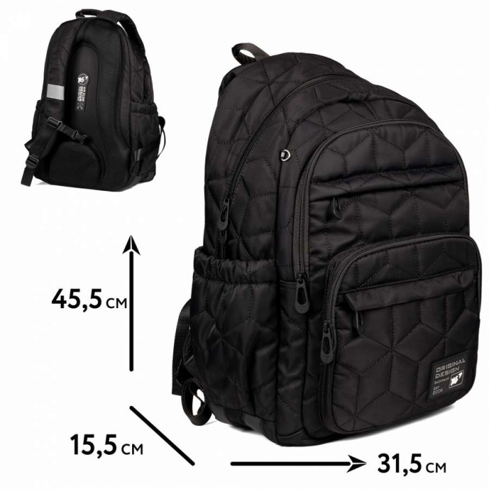 Yes Black TS-47 ідеальний для будь-якого образу та для будь-яких подій, що обов'язково сподобається підлітку. Об'ємне геометричне тиснення робить цей рюкзак неповторним та вражає своєю незвичайністю.