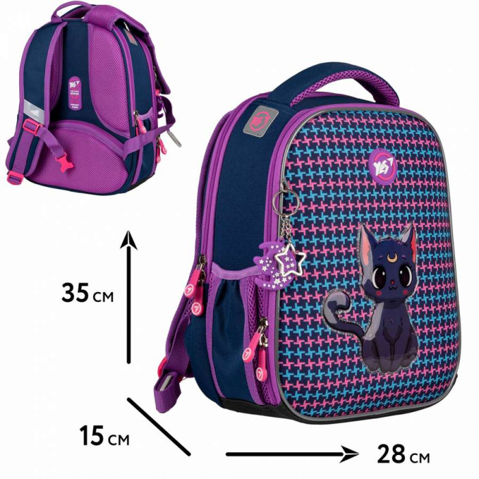 1. Рюкзак каркасний Yes Fantastic Kitty H-100: ідеальний ортопедичний рюкзак для першокласника! Особливості конструкції каркасного рюкзака Yes H-100: - ортопедична спинка з пом’якшувальними подушечками для правильної постави дитини;