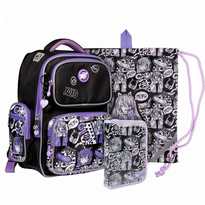 Чудове рішення - колекційний набір для дівчинки 6-9 років! Бренд YES пропонує купити в один клік рюкзак, пенал і сумку для взуття однієї колекції!
